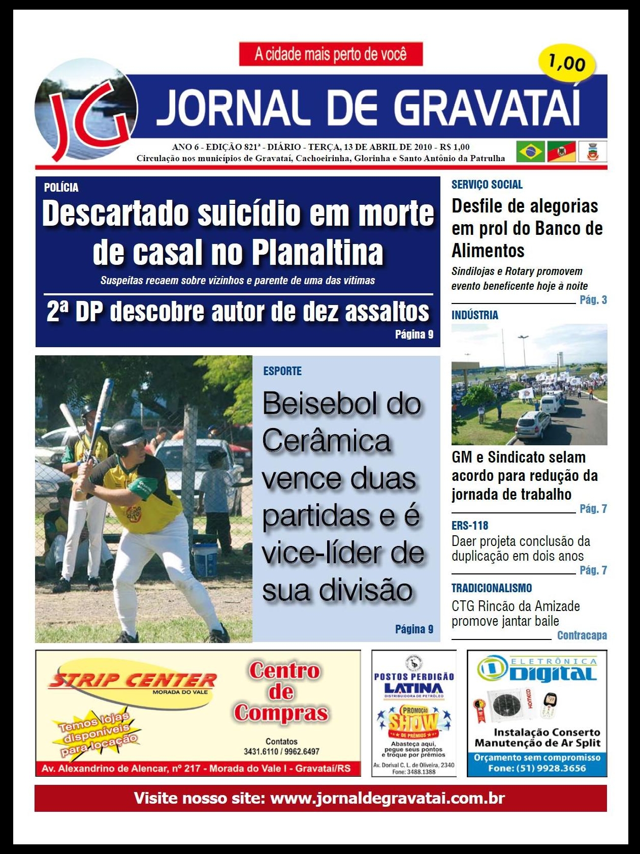 Manchete e foto na capa do Jornal de Gravataí na edição de terça-feira, 13 de abril de 2010 e reportagem na página 8 (clique para ampliar as imagens) |
