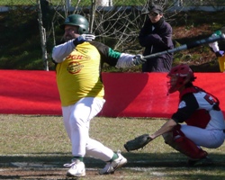 | Steve bats in the first home game at AFGD (Digicon) Athletic Field. |